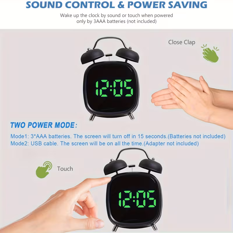 Klassische Doppelglocke Elektronik-Uhr mit Einstellbarer Helligkeit